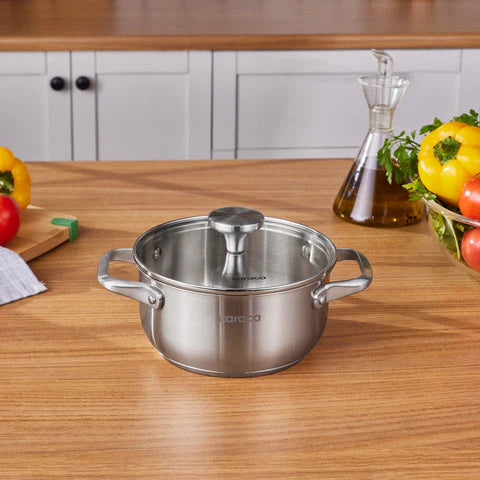 Casserole à induction en acier inoxydable Karaca Elite avec couvercle, 18 cm, argent